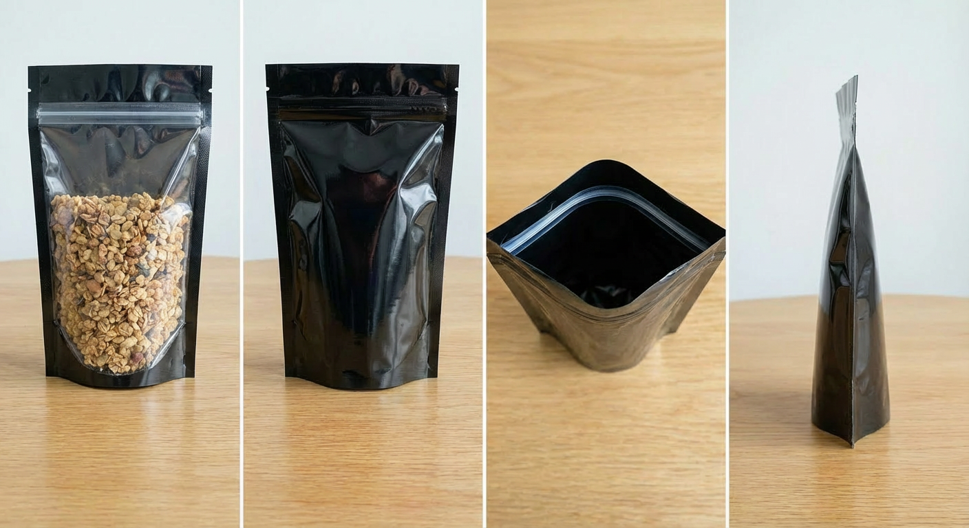 With a stand-up bottom (Doypack design) and resealable zipper, these pouches offer convenience, attractive shelf display, and reusable storage.